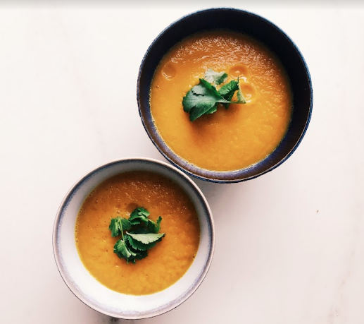 - Eet voedende, warme en zoete voeding zoals pompoensoep, appelmoes met kaneel en havermout. Vermijd rauwe voeding (salades, sushi)