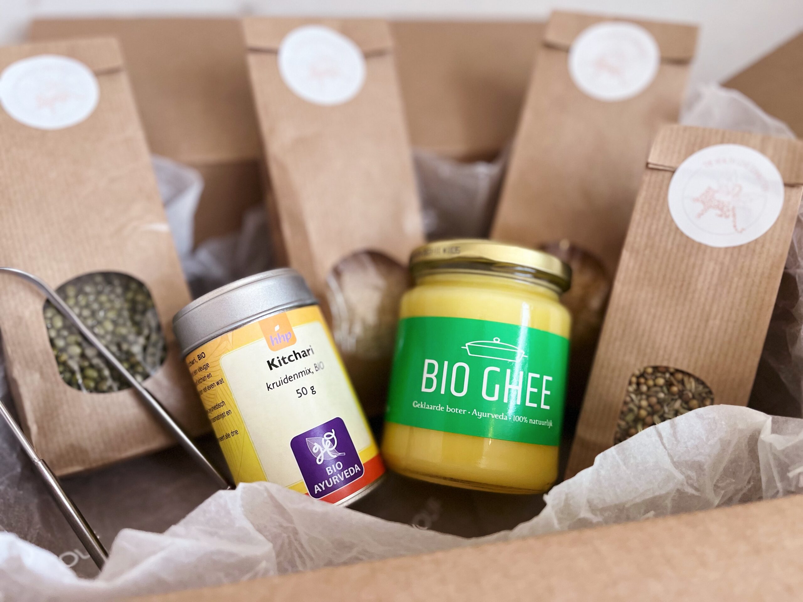 In de vijfdaagse Ayurvedische Detox Box zit: